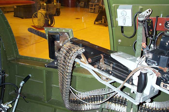 A view of the rear gunner's station, looking from the inside of the aircraft.